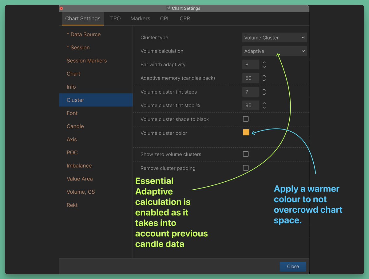 🎯 Exocharts Adaptive settings can be used to acknowledge spikes in Volume.