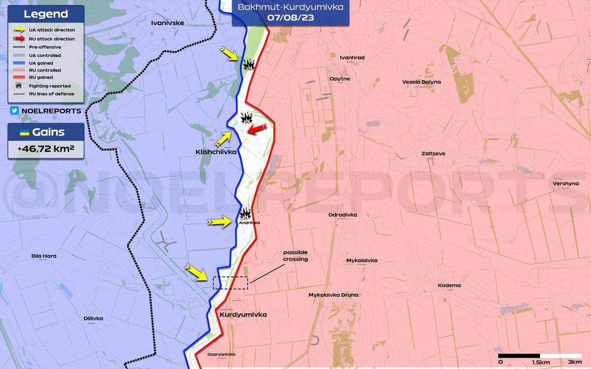 ➡️There is preliminary info that the AFU has crossed the railway tracks north of Kurdyumivka and is attacking its northern outskirt Zelenopillya.