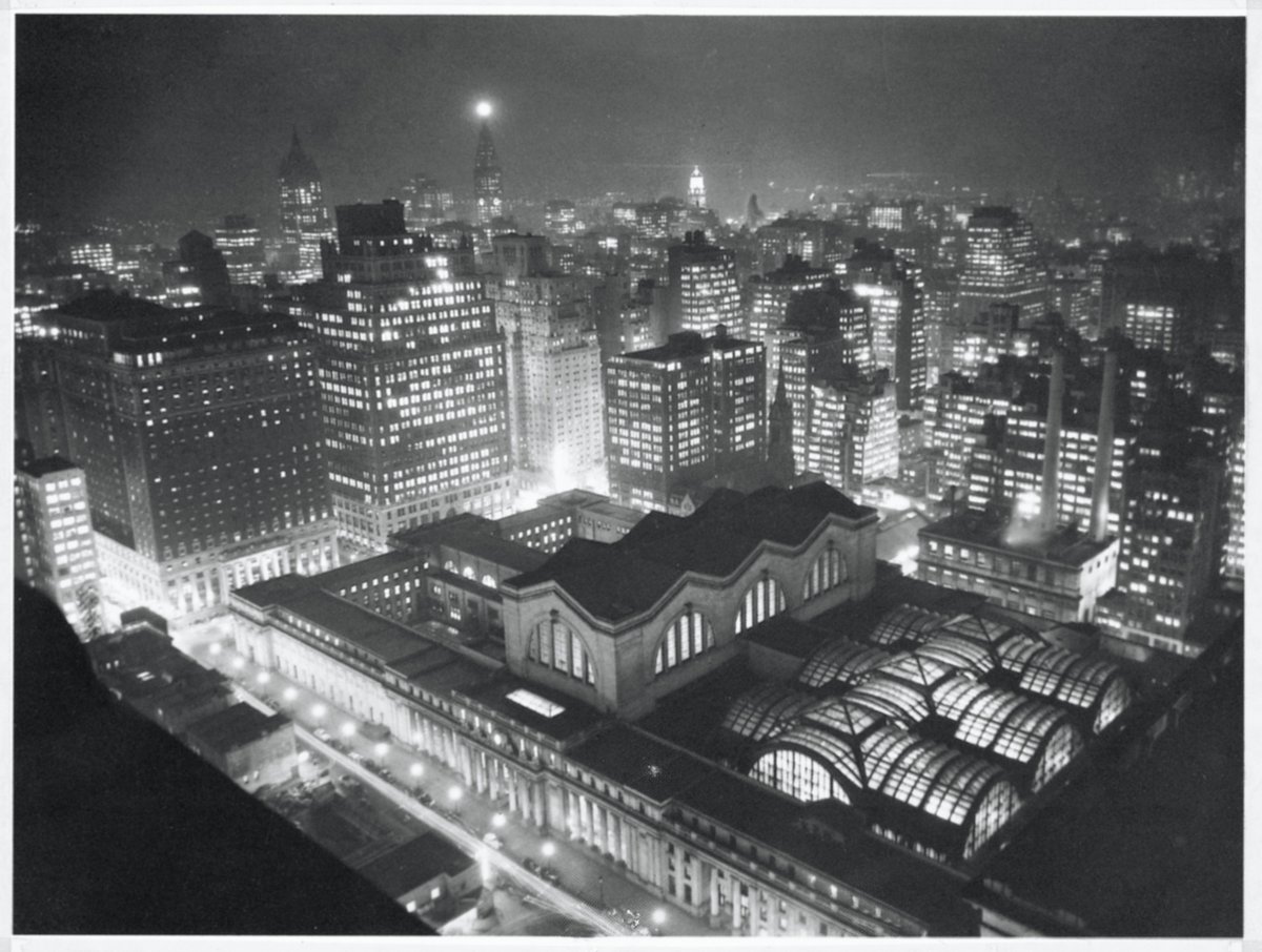 14) An evocative view of Penn Station as seen from above on a New York night, around 1950.