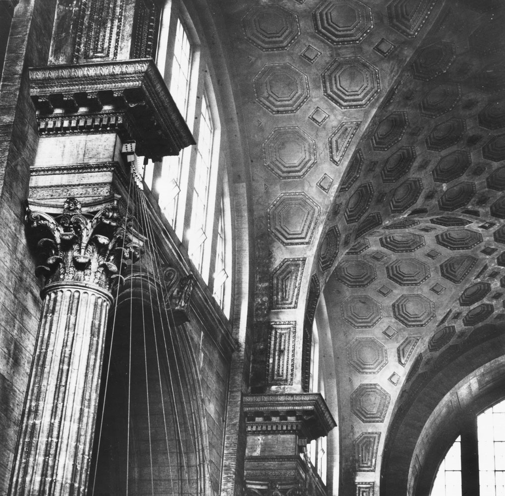 9) The ceilings and vaults of the Waiting Room incorporated the recessed octagonal coffers used as both a weight-saving and decorative feature on wide-spanning ancient vaults. A fine example of these particular coffers is preserved in the remains of Rome's Basilica of Maxentius.
