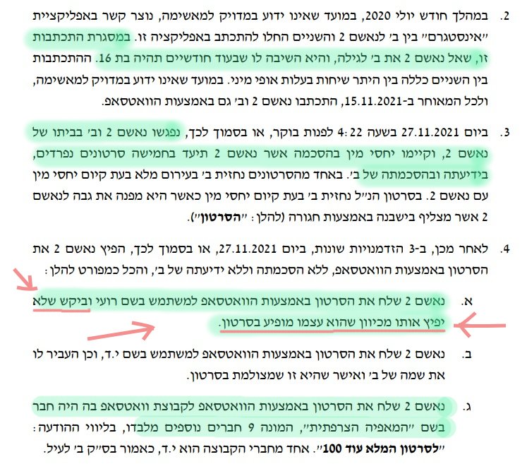 גם בוואטסאפ הוא הפיץ, בניגוד לרצונה, סרטונים של בת 16 איתה שכב. הוא אפילו ביקש מאחד מחבריו לא להעביר הלאה את הסרטון שבו רואים אותו. מודעות גבוהה לפרטיות