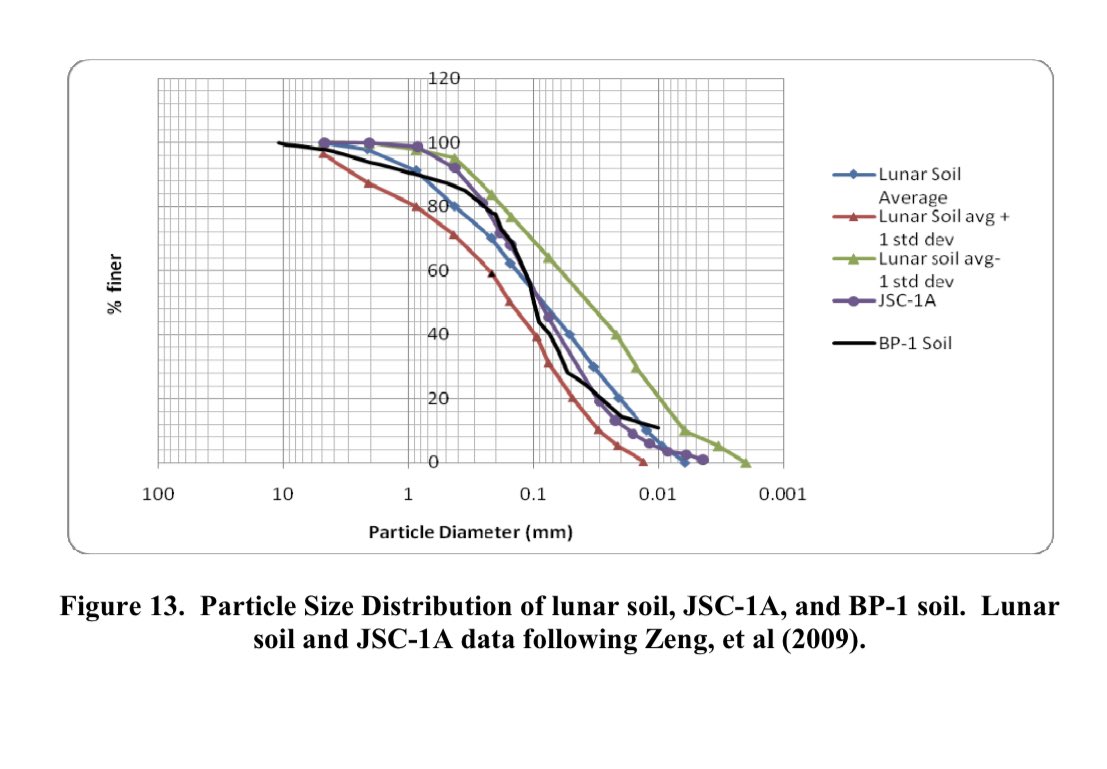 2/ This surprised us because the main factor in how a granular material behaves is it’s particle size distribution (PSD). All 4 lunar simulants had very similar PSDs matching real lunar soil, and yet one of them behaved completely unlike the others.