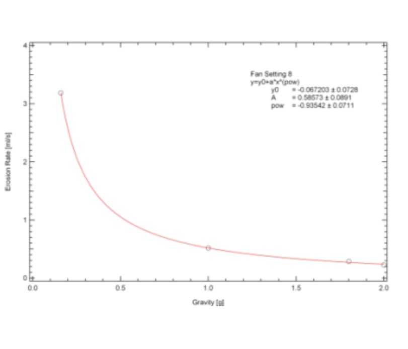 2/ In the soil erosion tests we got a super clean result: in non-cohesive materials, erosion rate scales inversely to gravity. (That’s me on the aircraft floor doing the test. I hope you like our McGyver flashlights we duct-taped onto the box during the test, lol.)
