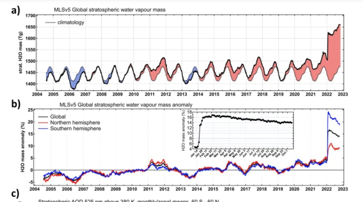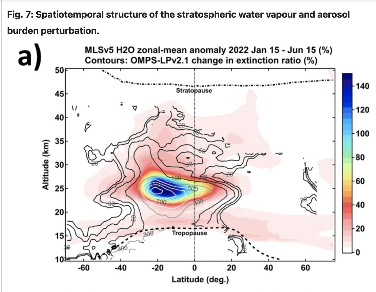 This was a region well monitored by satellites. In fact, Tonga didn’t just reach into the stratosphere, but even the lower mesosphere, higher than Pinatubo. This allowed things to circumnavigate the planet in only ~1 week