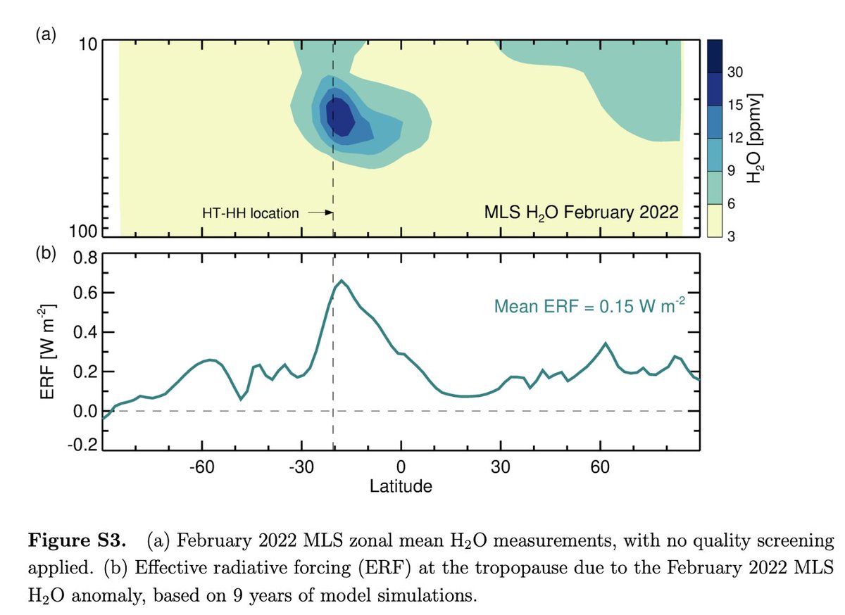 Tonga has come up recently because of the unprecedented July 2023 temperatures. But estimates of the radiative forcing of the ~1-2ppm stratospheric H2O anomaly are on the order of ~0.12-0.15 W/m2, somewhat small even in the February following the eruption … https://t.co/0no5jLHMhH https://t.co/17K2ube8a2agupubs.onlinelibrary.wiley.com/doi/10.1029/20… twitter.com/i/web/status/1…