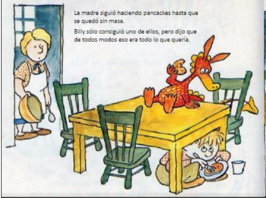 La madre de Billy le puso tortitas para desayunar, pero el dragón se las comió todas.