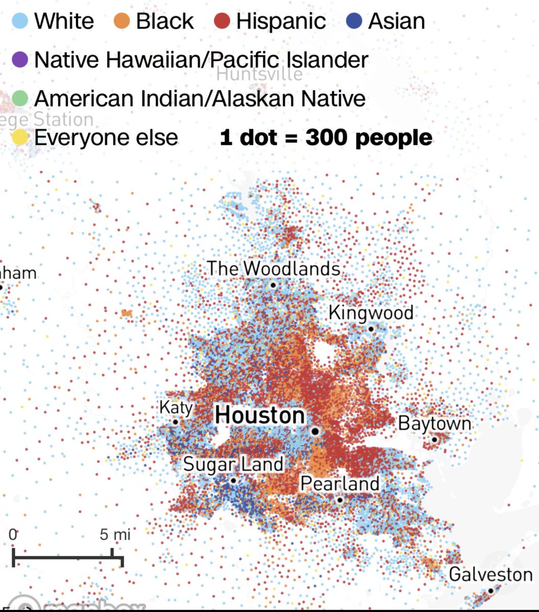 Greater Houston is just under 50% White, ~25% Latino, ~13% Black & ~10% Asian.