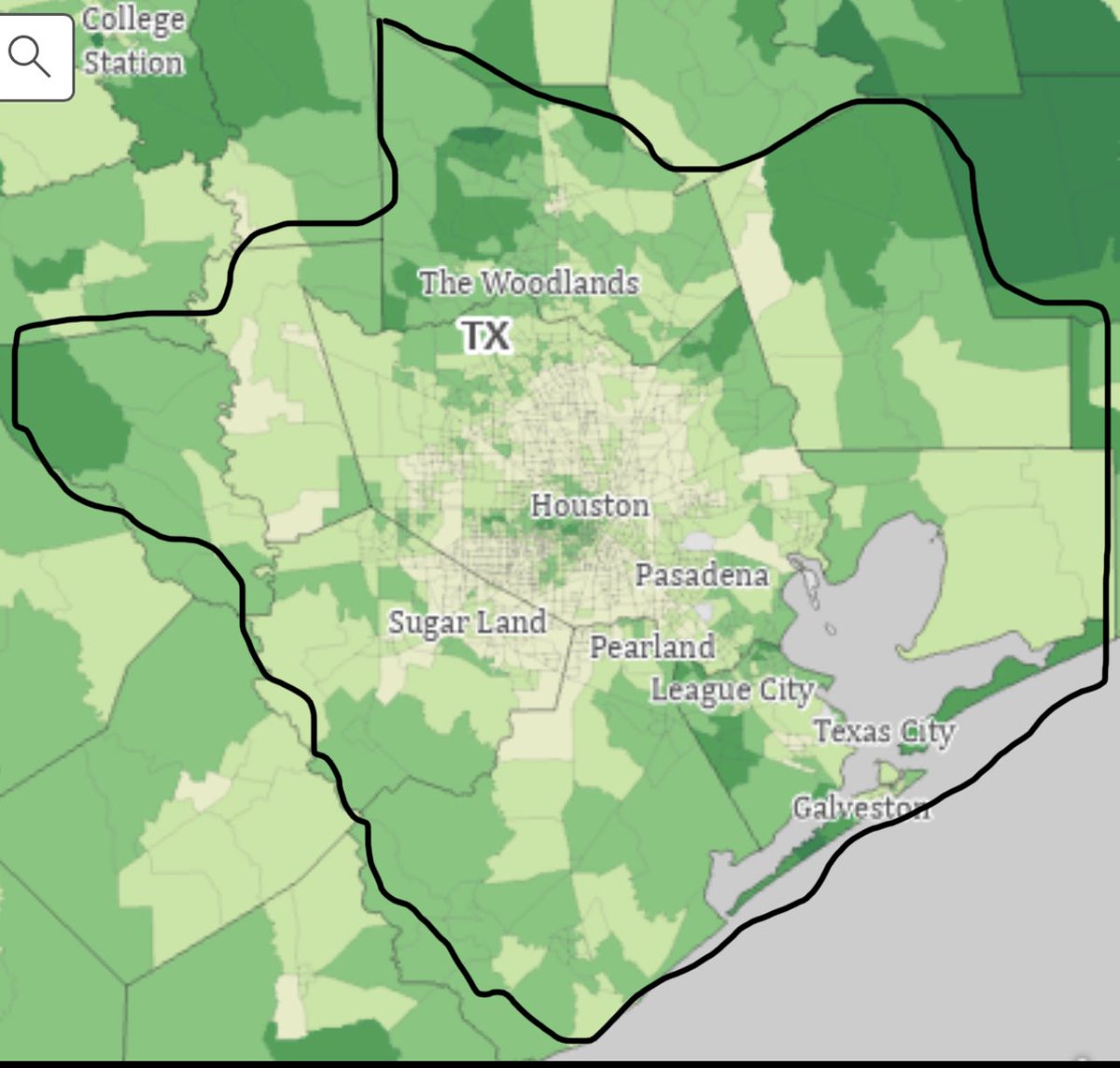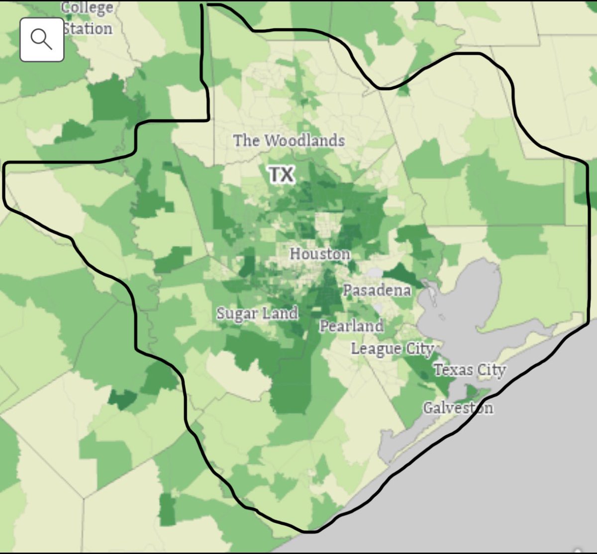 Its Latino population is distributed fairly evenly (all counties were btwn 23-31% in 2020), w/ the highest share in Brazoria County to the south
