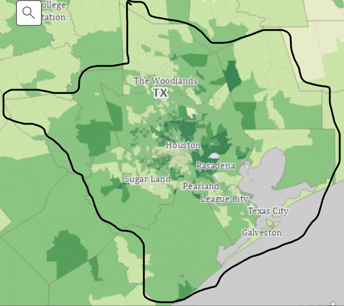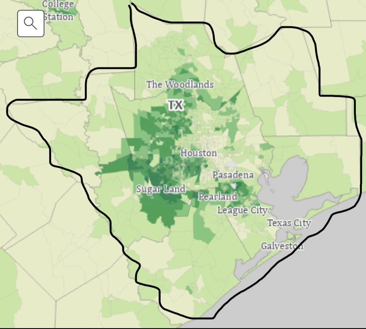 It’s concentrated in Fort Bend County (~20% Black) to the SW (anchored by Missouri City).