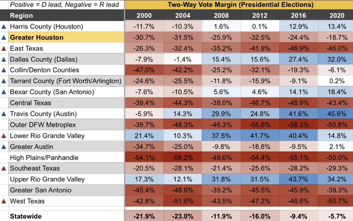 Ds likely need to keep up their momentum in Greater Houston to have a chance at flipping TX in the next few cycles