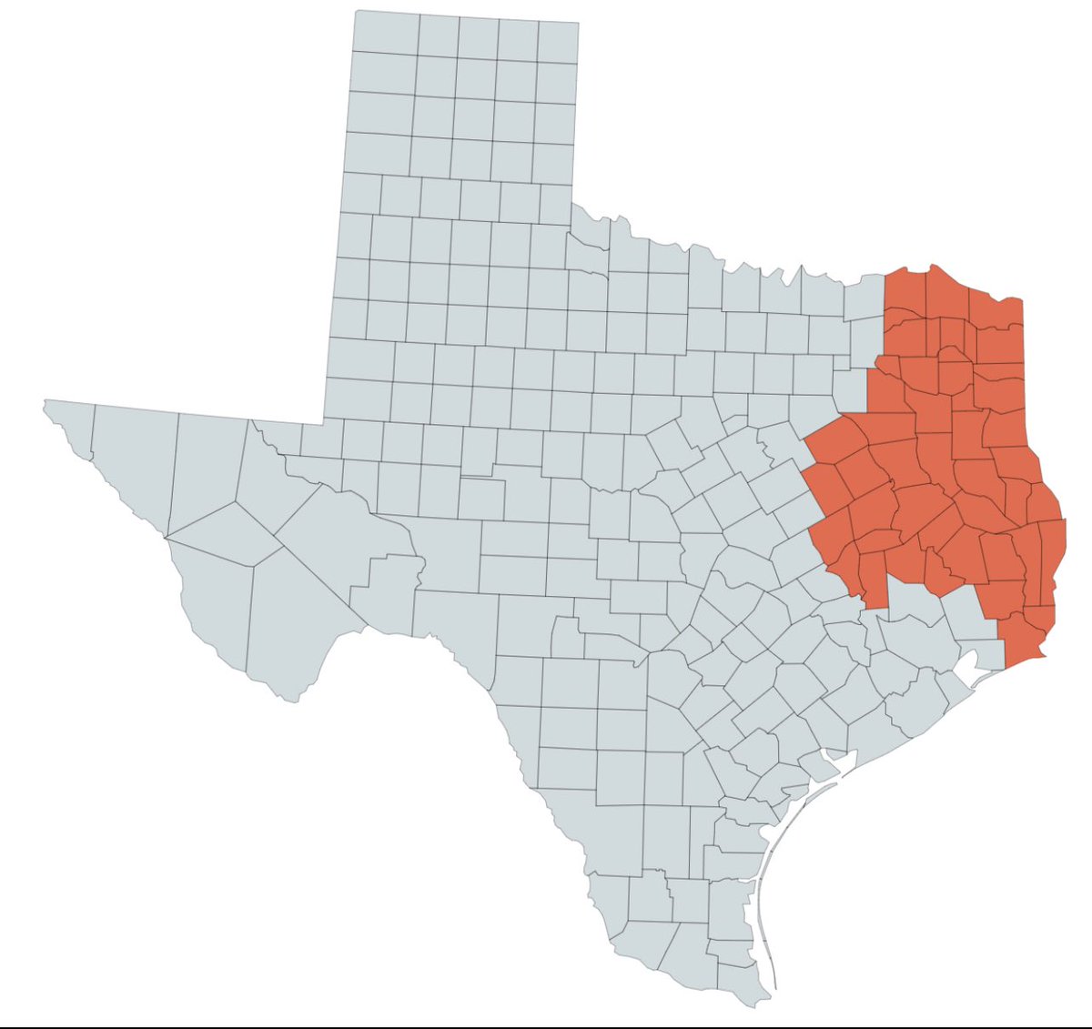 Next up in this 17-part series is East Texas, the largely rural, dark red, third most populous region in the state.