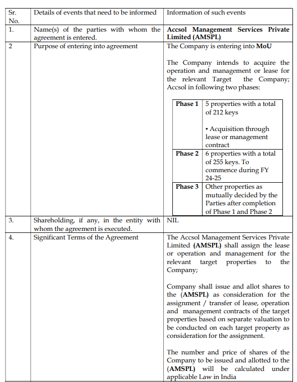 Logistics Parks - Developed around 5.5 million square feet of Grade-A logistics and industrial parks. In process of acquiring of approximately 103 acres of land to build and develop another 2.20 million square feet of logistics and warehouses in the near future.