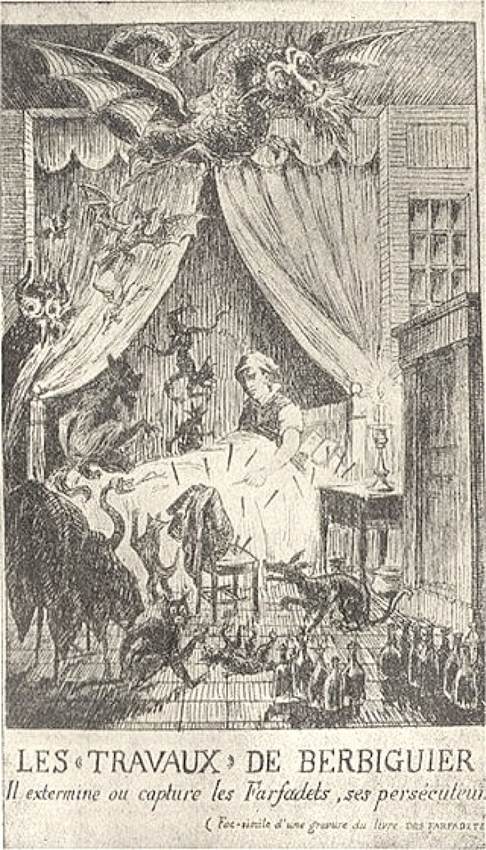Tenemos, por ejemplo, al autor Henri de Montfaucon de Villars, muerto en 1673 por, según la leyenda, revelar los secretos de los silfos. O a Alexis Berbiguier, quien acabó sus días recluido y atormentado por los Farfadets, duendecillos sobre los que escribió un completo tratado.