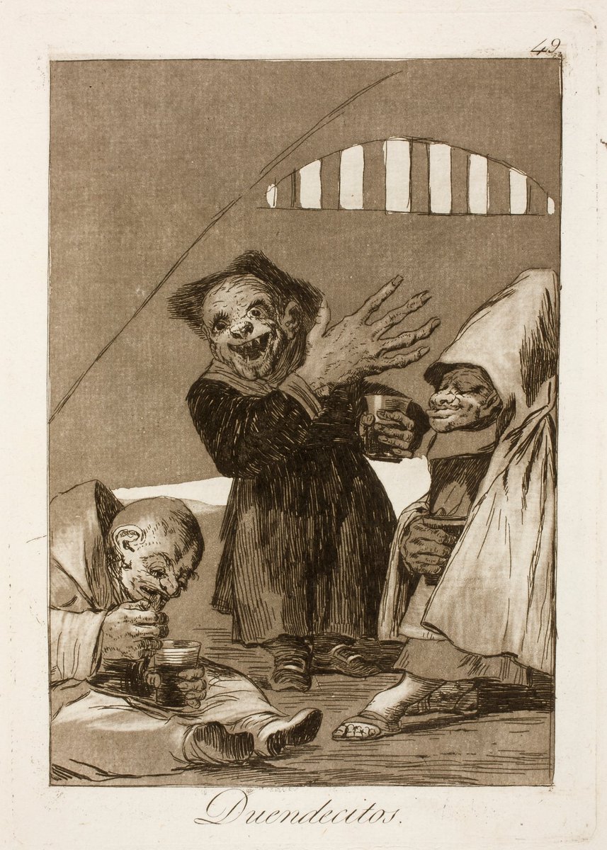 ...que danzaban en círculos sobre la cúspide del surtidor. Allí, agitándose en todas direcciones, corriendo por el suelo en forma de enanos repugnantes y contrahechos, encaramándose en las paredes, babeando y retorciéndose en figura de reptiles...