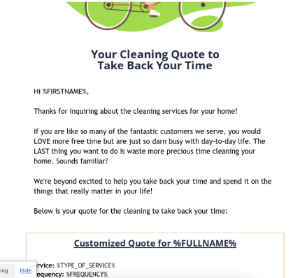When our rep presses “send” on the quote, this is one of the emails the customer gets.