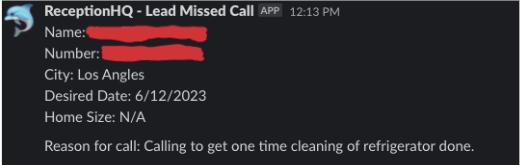 So, I created a zap that sends my sales team a slack notification every time we get a missed call so they can call the customer back.