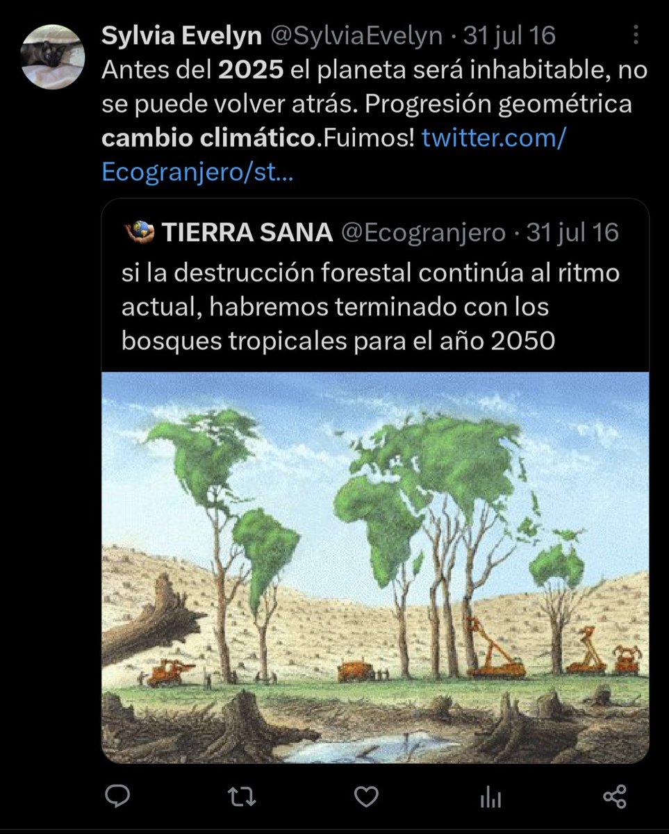 Se han perdido unos 100 millones de hectáreas en 7 años. Para perder los siguientes 1.000 harían falta, en proyección aritmética, unos 70. Es una jodienda que se debe evitar, eso está claro. Pero en 2025 parece que el planeta seguirá siendo habitable.