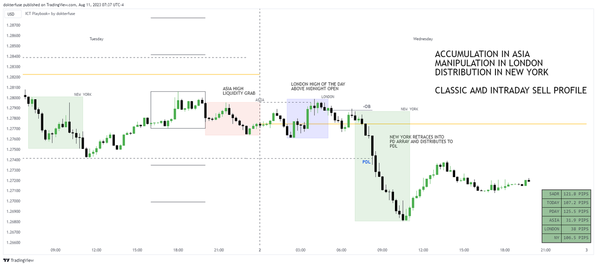Intraday profiles are specific profiles which will help you find high probability daytrades inside of the daily range. The profiles are framed on the Killzones/Trading Sessions: