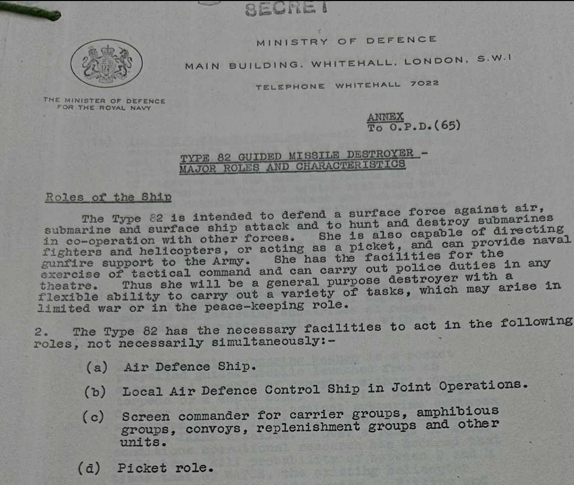 I always believed Type 82’s were to be escorts for CVA-01. This wasn’t the case. Carrier escort & operating East of Suez/Far East is mentioned. The plan was to build Type 82’s whether or not CVA-01 was built & they would be general purpose Destroyers.