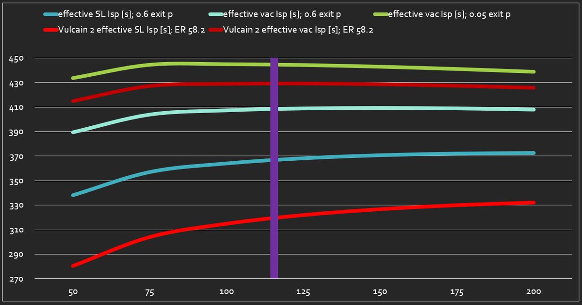 Or you could keep the ER and increase thrust. That's what SX is currently doing. Because there's limited space underneath Booster. Widening it would require changes for OLM and construction. Not sure about optimal compromise between thrust and Isp. 3/