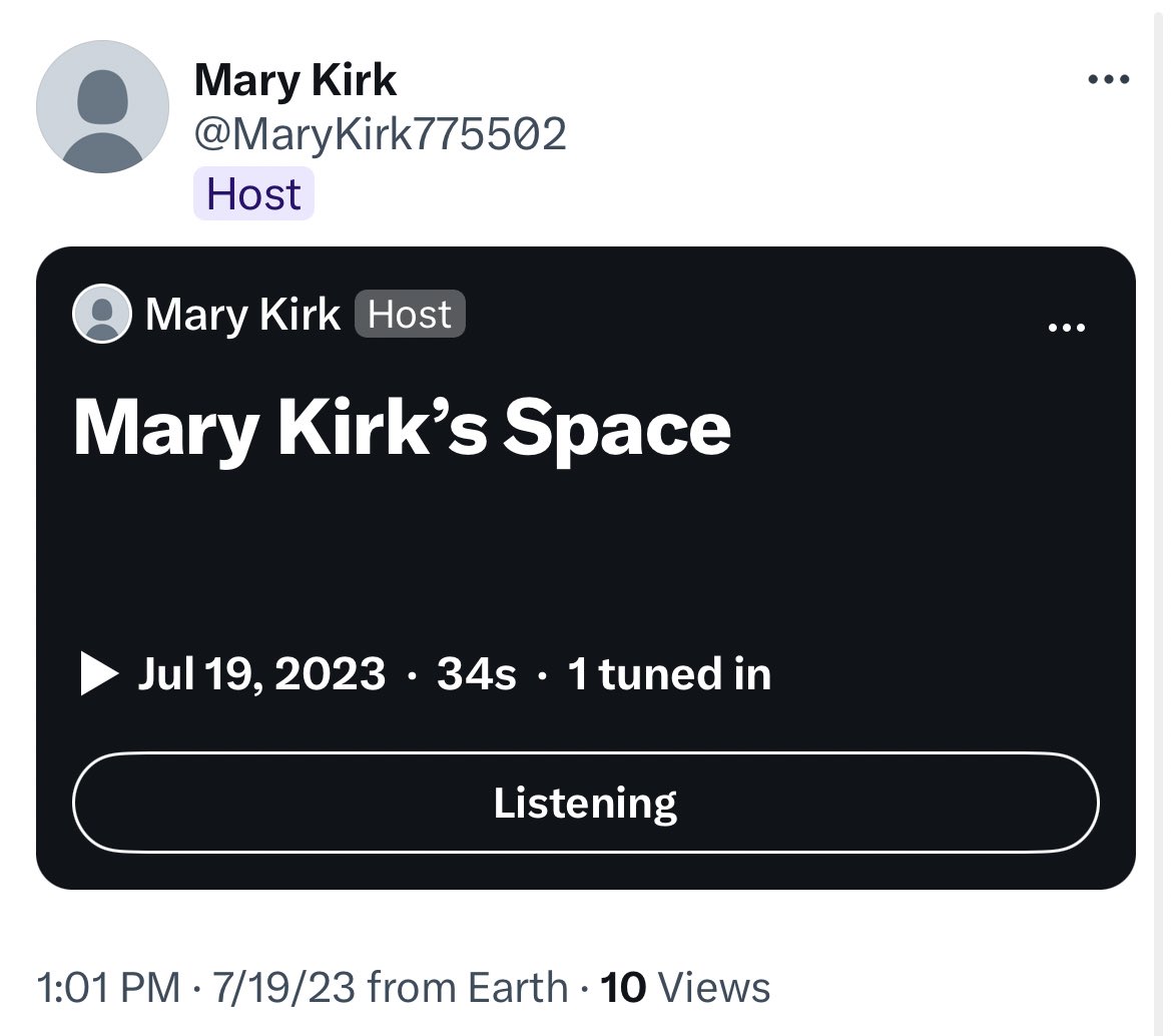 The account’s first tweet on 7/19 was a 34 second Space that was nothing but background music. The account has tweeted/RTd 136 times since then.