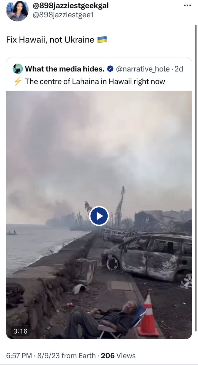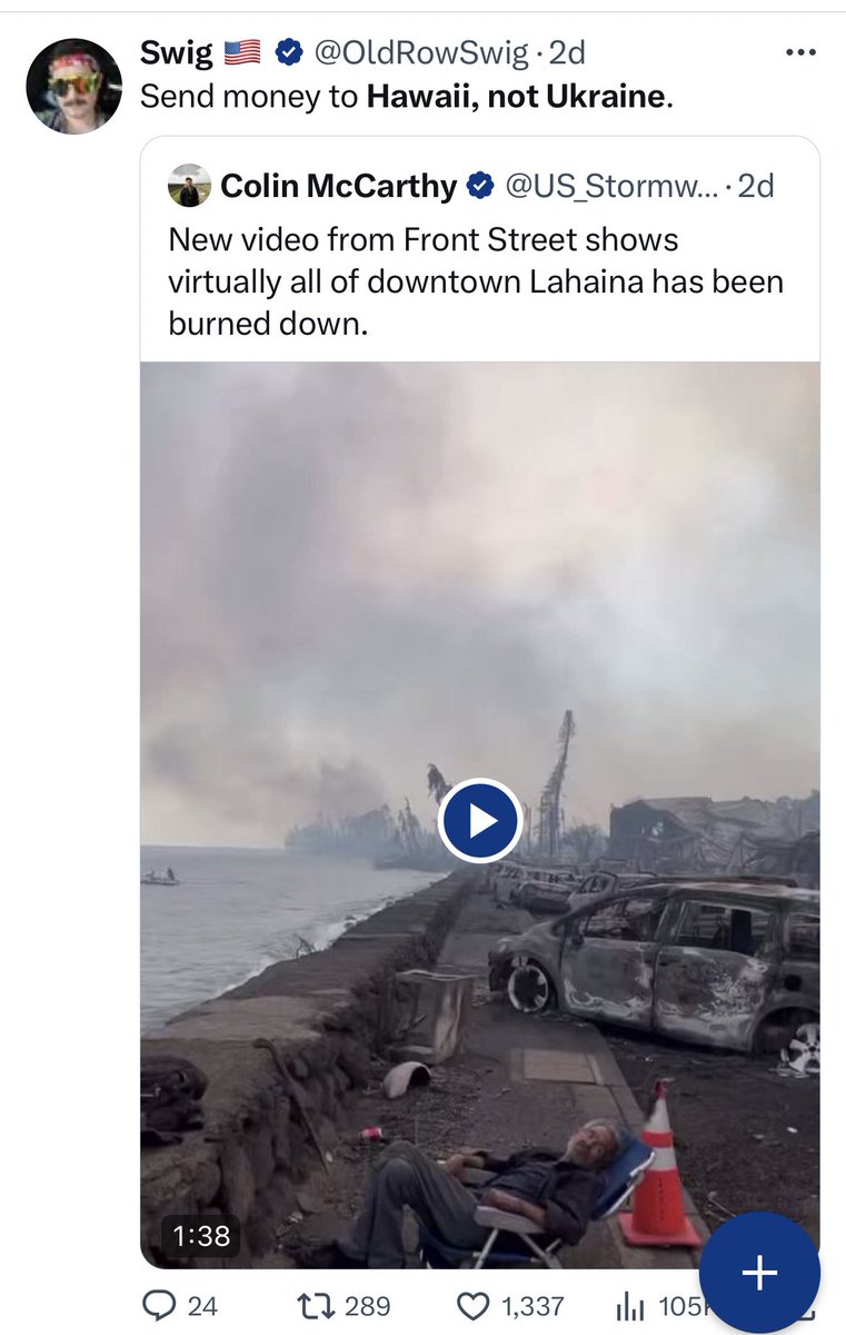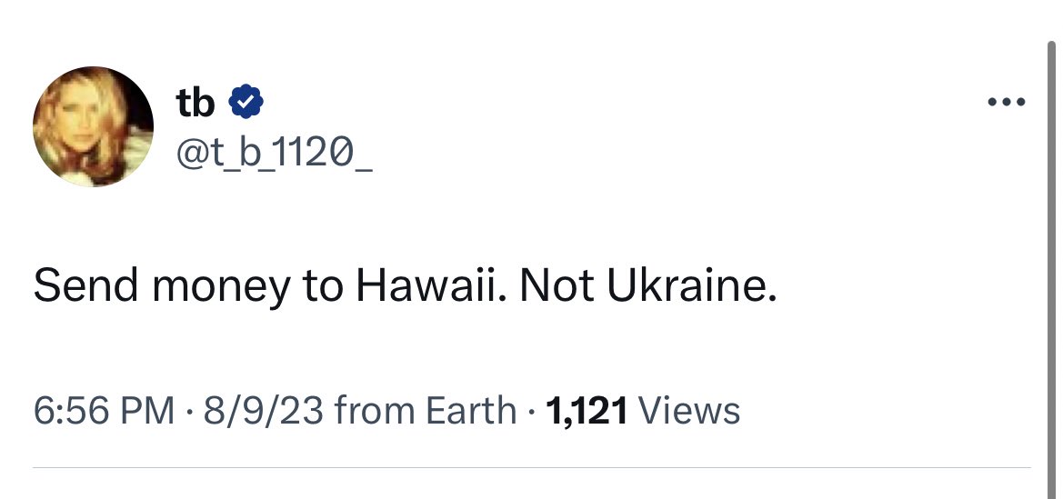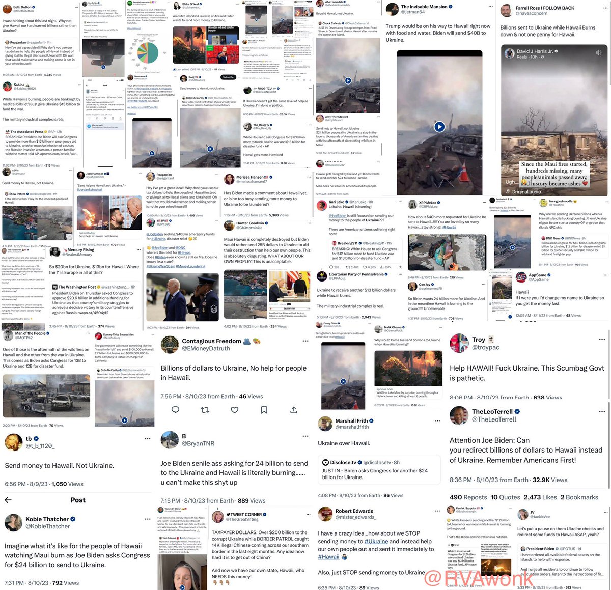 So, the “fund Hawaii, not Ukraine” talking point has a lot of characteristics of a coordinated campaign that turned “organic” after seeding the narrative. These are a few examples.