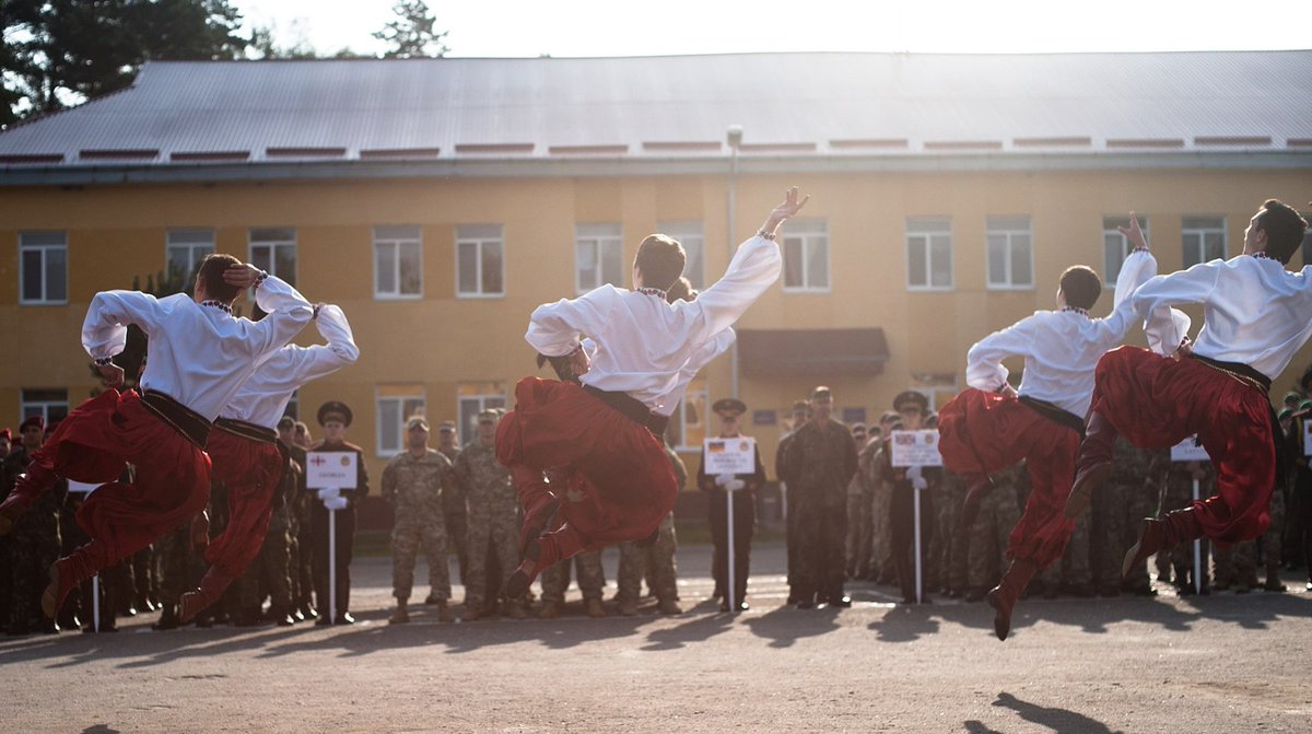Hopak - Ukraine's national dance was originally a militaristic dance performed by victorious kozaky returning from battle. Kobzar would play music as Kozaky would perform improvised dances showcasing their heroism and manliness. 6/20 https://t.co/tSqLxLmXu9
