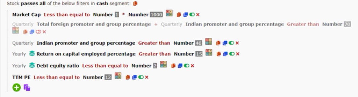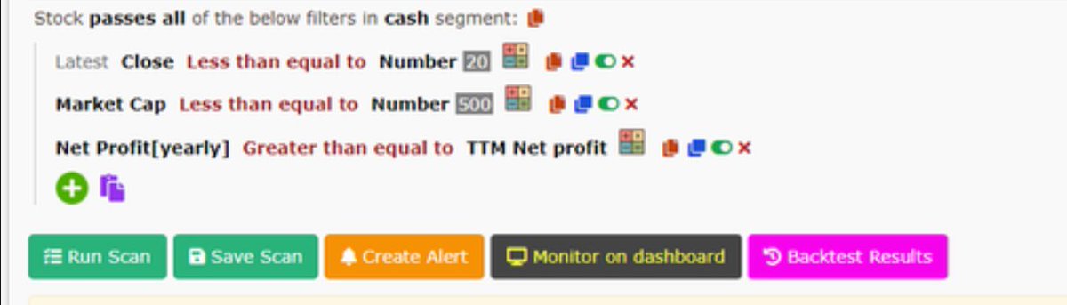 1) Golden Cross 2) Bounced from 200 EMA 3) EMA Confluence 4) Higher High 5) High Volume 6) Narrow Range 7) Microcaps with sales 🔼 8) Dividend stocks 9) Penny with sales 🔼 10) High Promoter stake