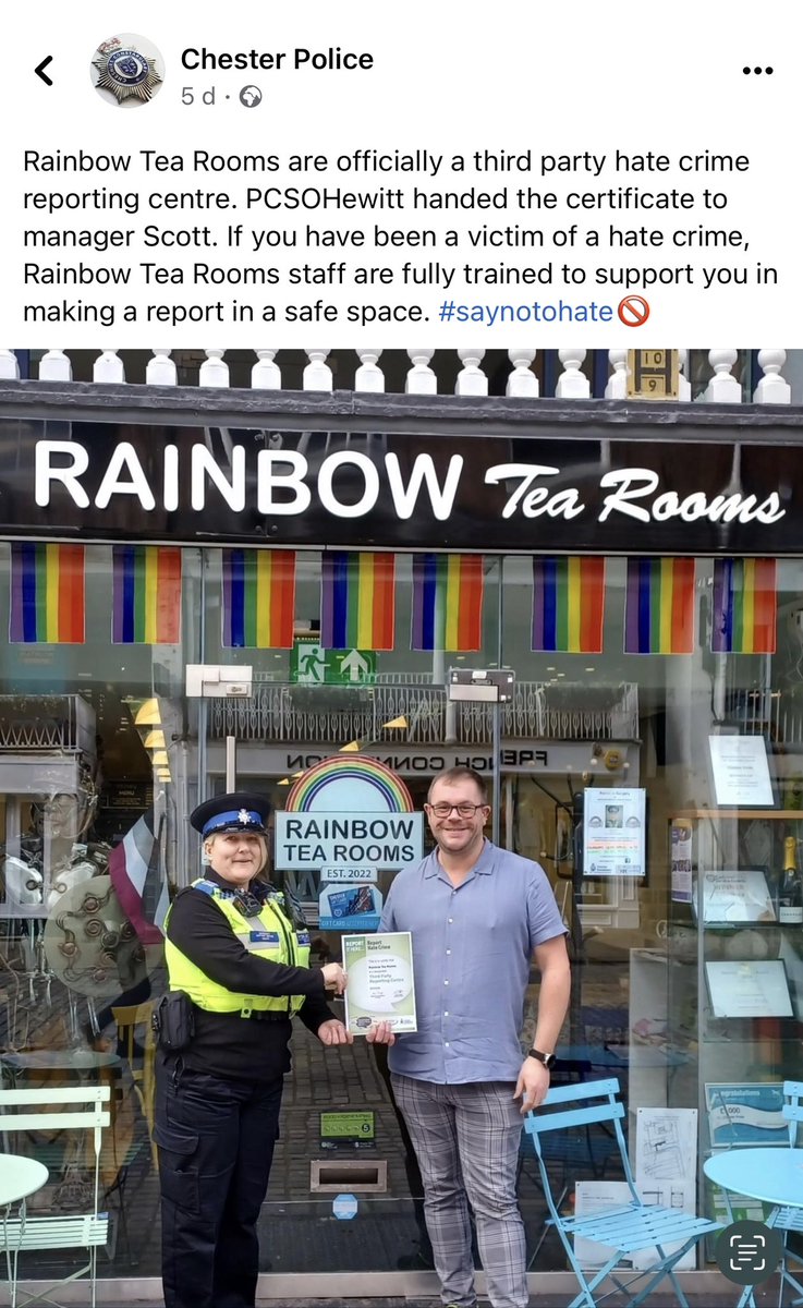 2. This is from a set of slides provided to the Rainbow Tea Rooms, a third party supplier to Cheshire Police, which is authorised to take reports of hate crime.