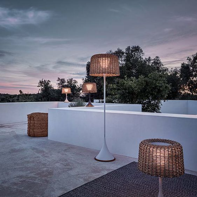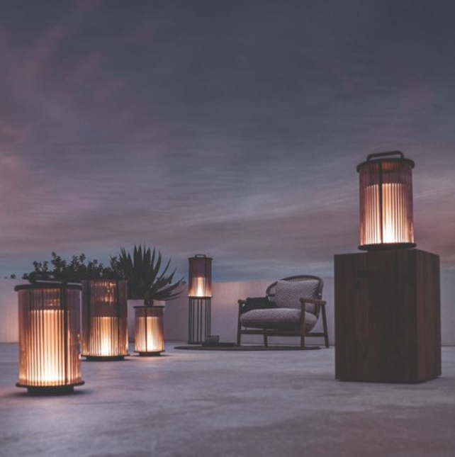 Just as you want to create a theme inside w/ fixtures, you can do the same with lamps or lanterns outside.