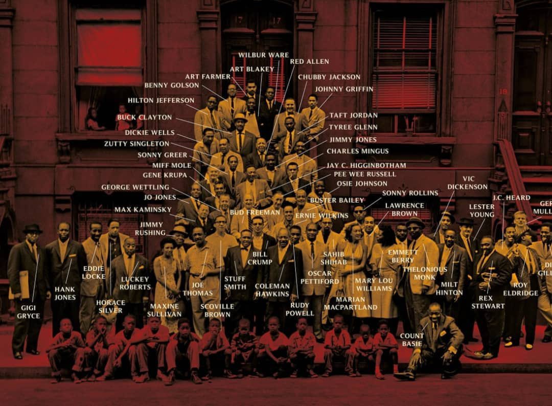 In all, 57 musicians duly assembled in Harlem between Fifth and Madison Avenues. The group included Dizzy Gillespie, Art Blakey, Thelonius Monk, Coleman Hawkins, Lester Young, Charles Mingus, Gerry Mulligan and Count Basie.