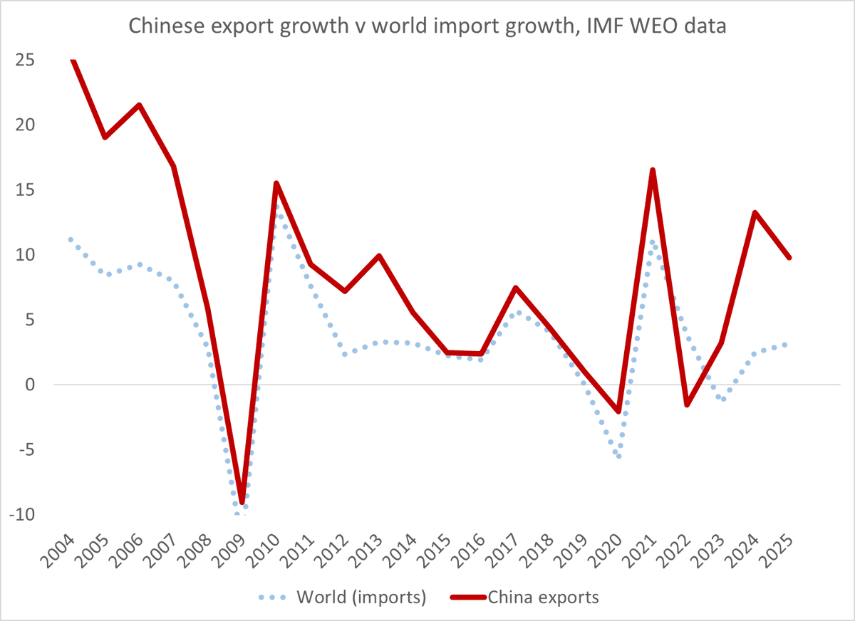 The WEO forecast for China's 2025 surplus is 3.3% of GDP (the h1 surplus) so an upward adjustment from the absurd $370b surplus in the ESR. That surplus is forecast to fall to 2.8% of GDP in 26, and then down to 2% of GDP in 2020. No problem here worth global concern ...
