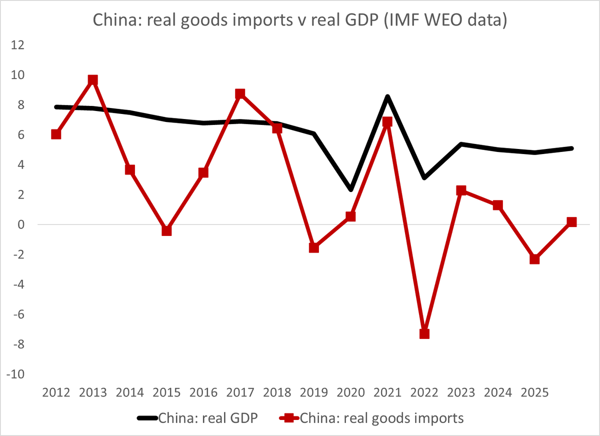 And no one is doing well selling into China. The IMF WEO data shows zero (slightly negative) import volume growth since the end of 2018, while export volume growth is up 40% ...