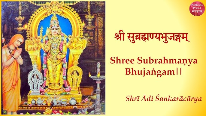 Towards the close, Bhujangam moves to the total absorption of Skanda " Let Skanda’s form stay in my vision, His fame ring in my ears, His story fill my speech. Let my hands serve His feet, my body be His servant, my limbs and thoughts rest wholly in Guha."