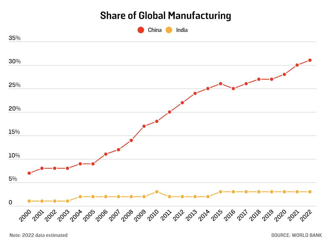 2nd truth: "despite India's growth, India’s economy has remained much smaller than China’s" and the gap between both has actually considerably widened in China's favor.