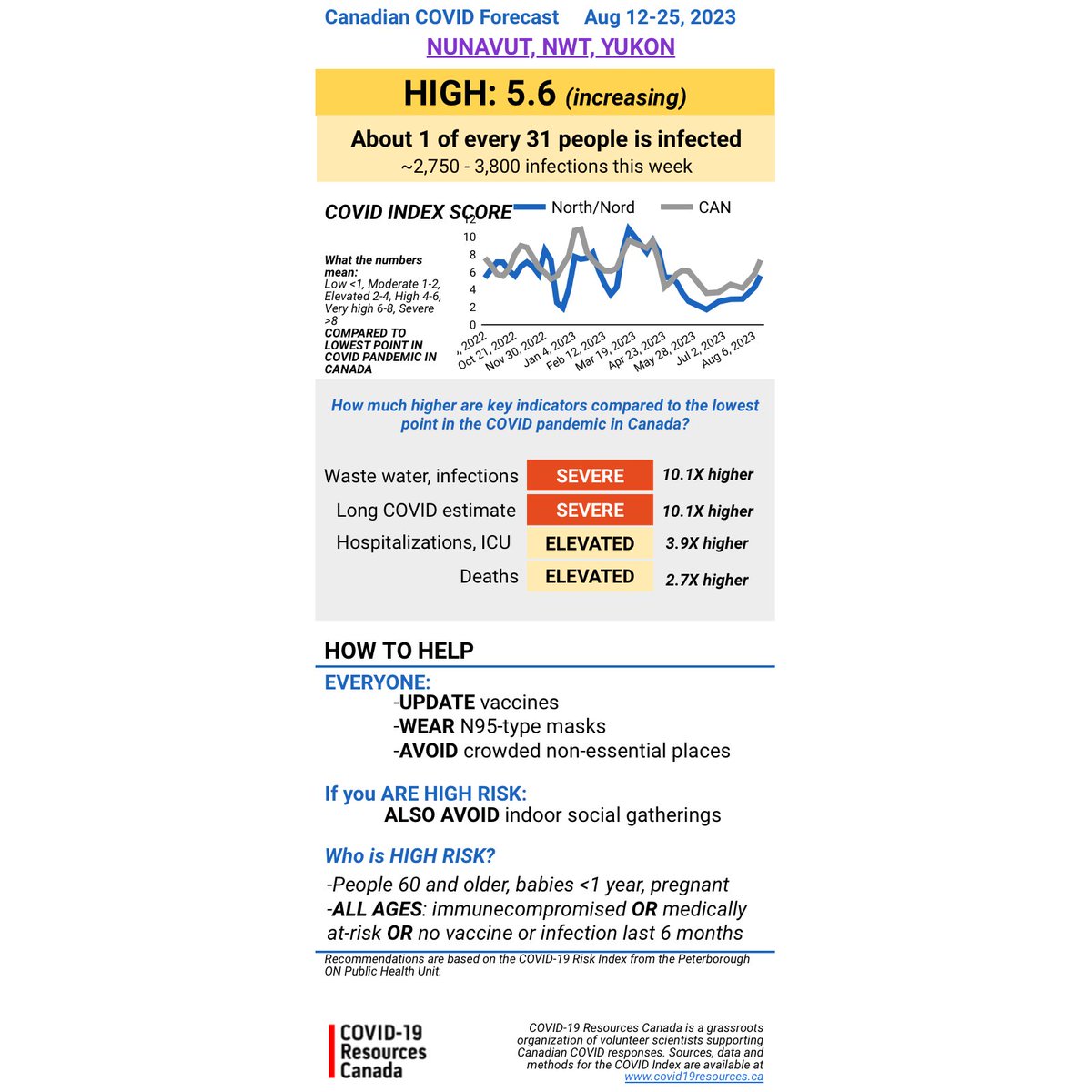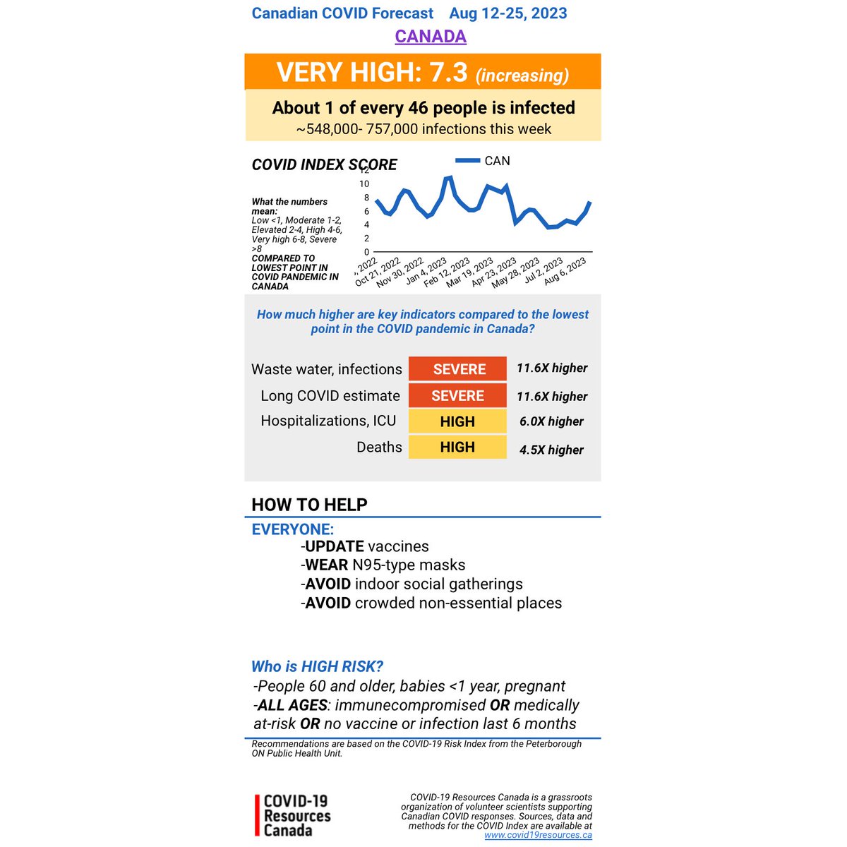 CANADA: ELEVATED, stable, about 1 in 124 people are infected