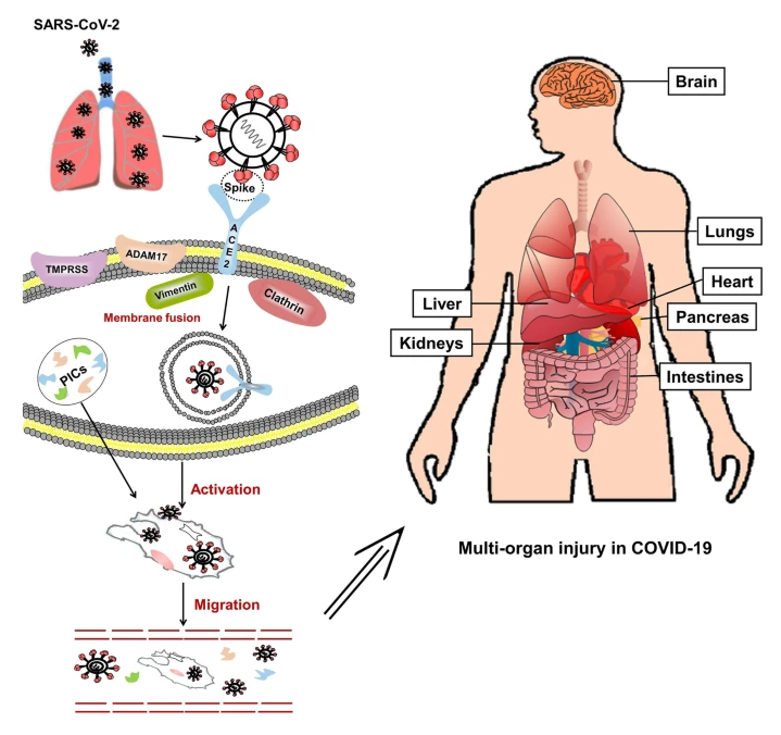 Assumption-2020: What we could not explain was how the secondary phase, where infected epithelium cells actively replicate SARS to infect other non-epithelium cells where the expression of ACE2 was low or undetectable causing multi-system organ damage.
