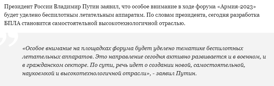11/ Putin said that special attention at the #ARMY2023 forum will be devoted to unmanned aerial vehicles.