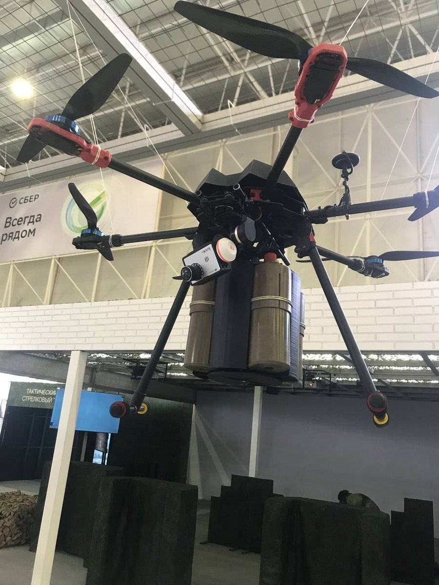 7/ A large hexarotor UAV for dropping heavy-caliber munitions was presented by Tyumen Higher Military Engineer Command School. These types of drones are used by both sides, and Russians dubbed Ukr. versions "Baba Yaga" - a witch in Russian folklore. t.me/UAVDEV/3300