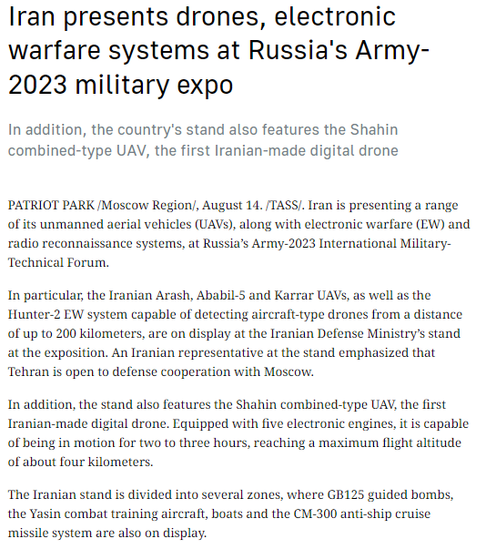 6/ Interestingly, Iran is also exhibiting electronic warfare systems at this forum, signifying a major Russian need for such technology against Ukraine's drones and UAVs.