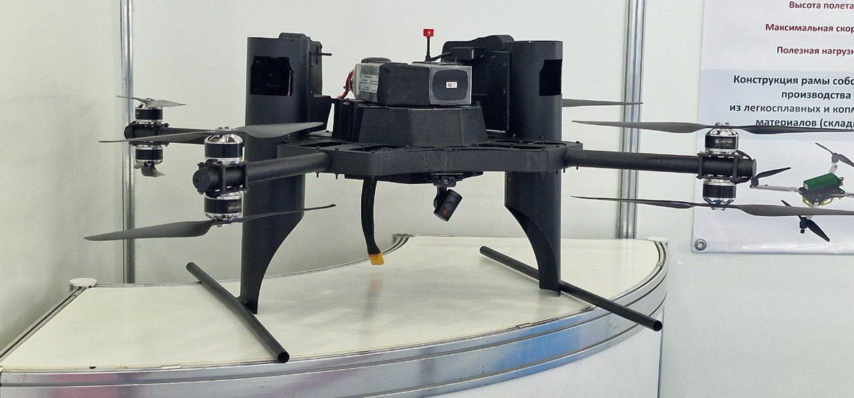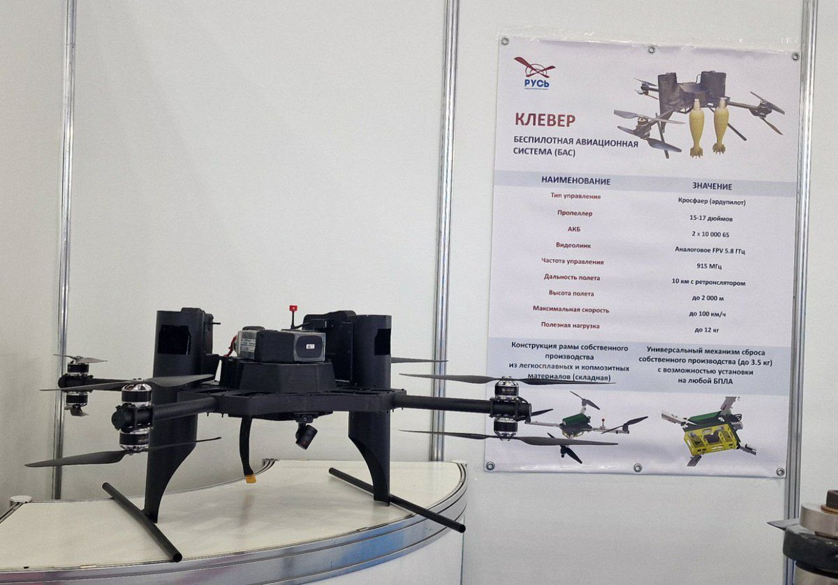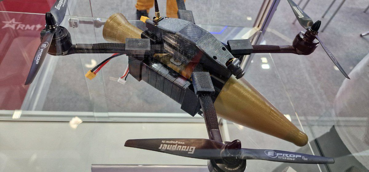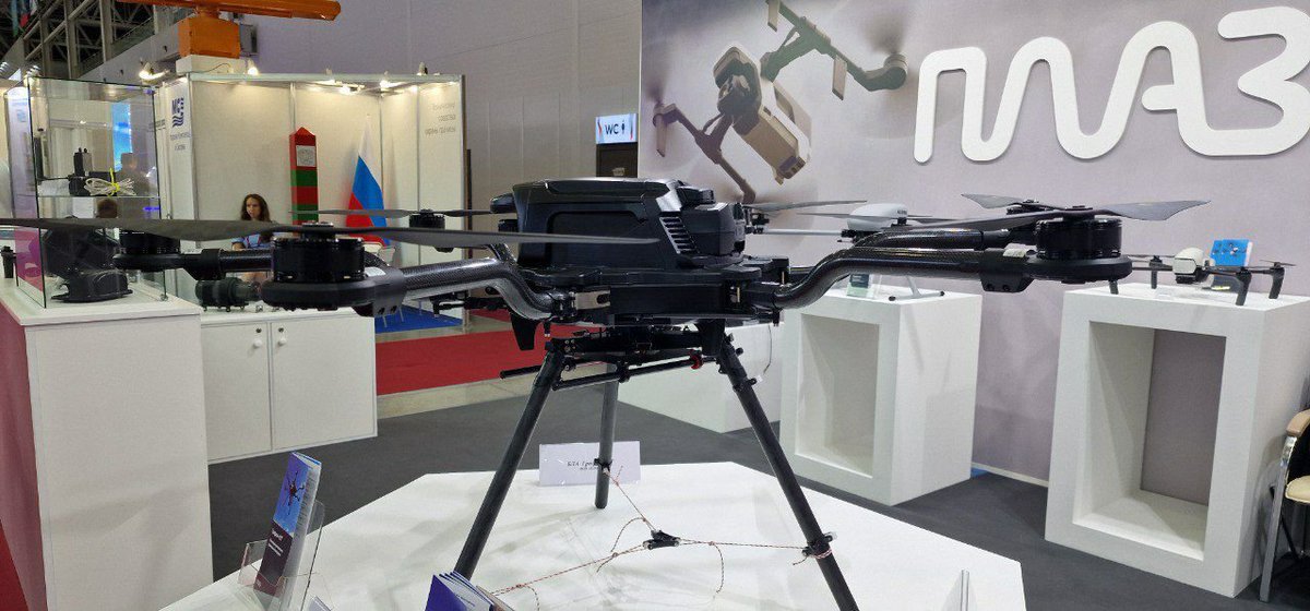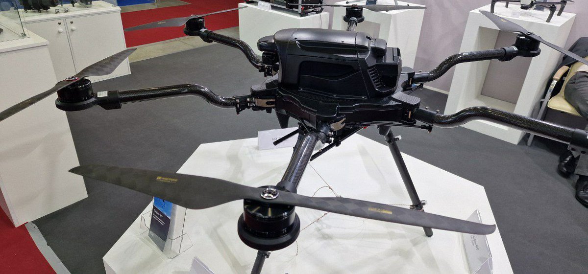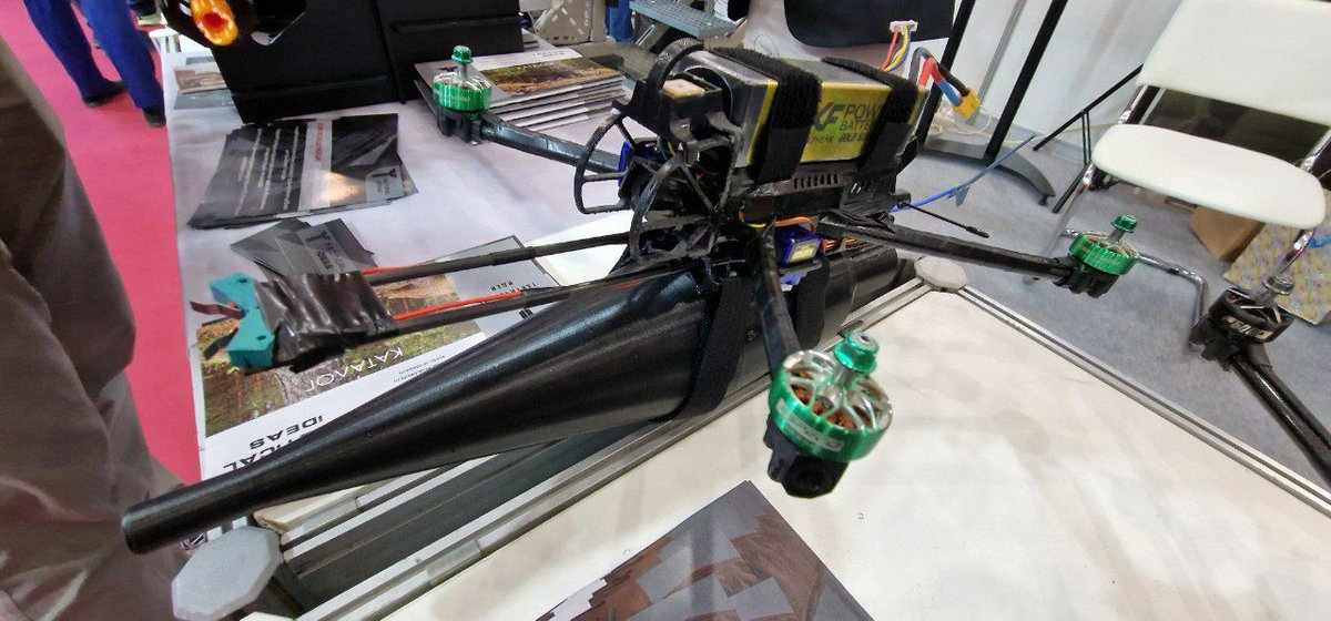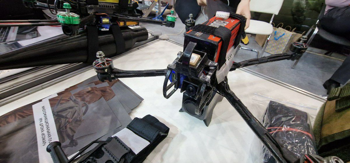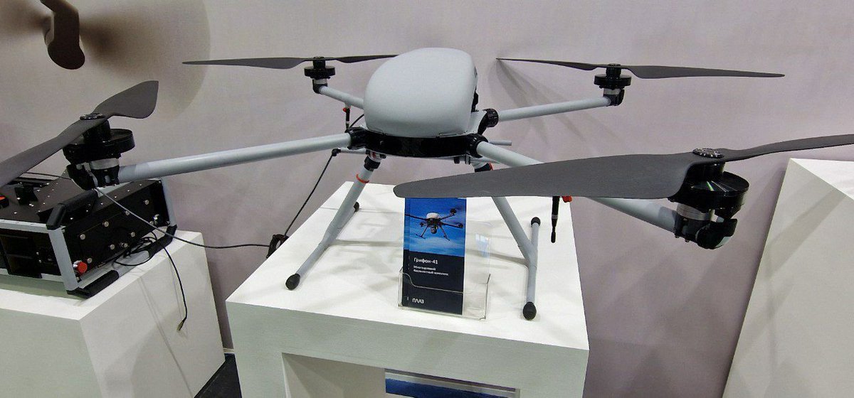 15/ Belarus is exhibiting its Kvadro-1400 heavy quadcopter armed with two RPGs. Apparently, this UAV is now in service with the Belarus military. t.me/uav_tech/19159