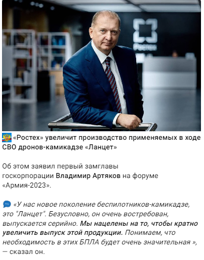 24/ Rostec also announced that it is increasing Lancet loitering munition production to meet wartime demand. t.me/uav_tech/19165