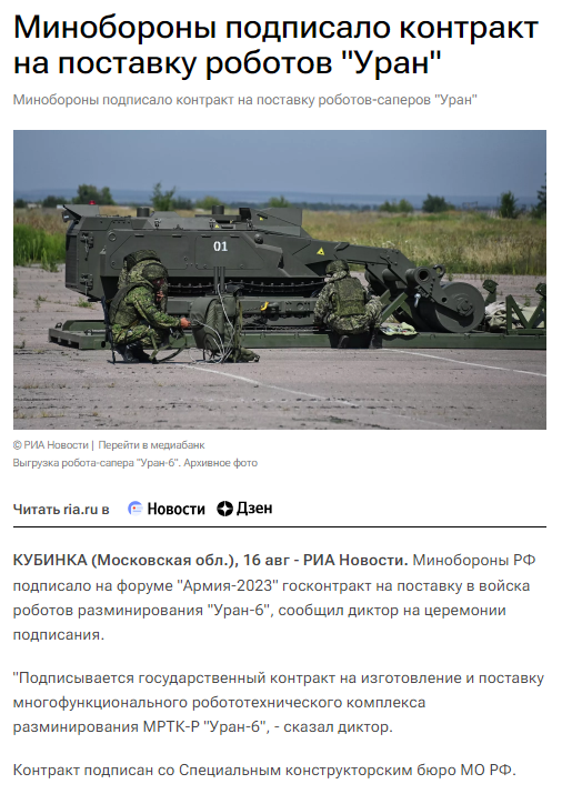 41/ The Russian MOD signed a contract for a delivery of Uran-6 demining UGVs.