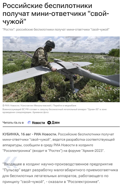 42/ Rostec's Pulsar research and production enterprise announced at #ARMY2023 that it is developing a small-sized "friend or foe" transponder for unmanned aerial vehicles to minimize friendly fire and EW fratricide.