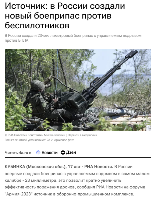 49/ Russian defense company announced the development of a 23mm controlled detonation ammunition to target small drones.