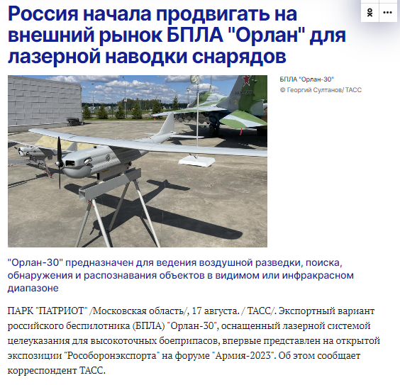 19/ Russia's Rosoboronexport says at #ARMY2023 that African nations are most interested in Russian UAVs, drones, EW and small arms. On possible offer are Orlan-10, Orlan-30, KUB and possibly Zala drones, along with a number of portable EW systems.