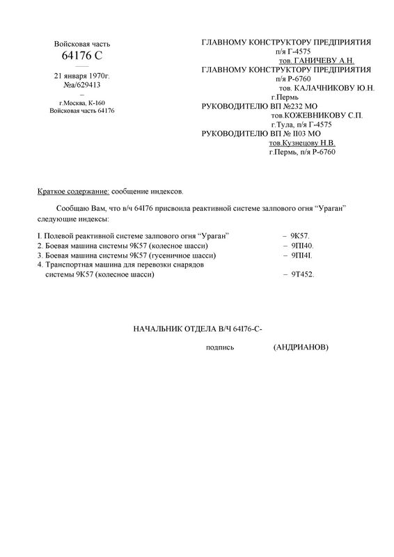 (2/25) According to Gurov, the Uragan ('Hurricane') project was proposed by TulgosNIItochmash (Tula) in 1964 as a more powerful and longer ranged system to the famous Grad (M-21) MRL complex.