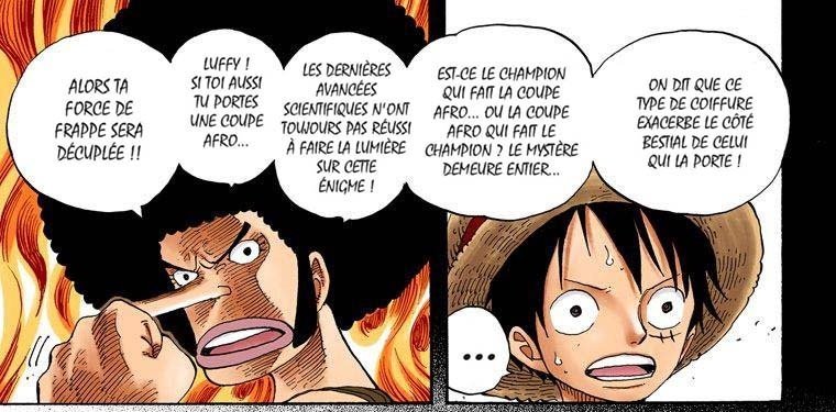 La coupe de cheveux africaine qui est bien lié à Luffy c'est la coupe afro qu'il portera au chapitre 314 qui forme en japonais "Taiyo"="Le soleil"