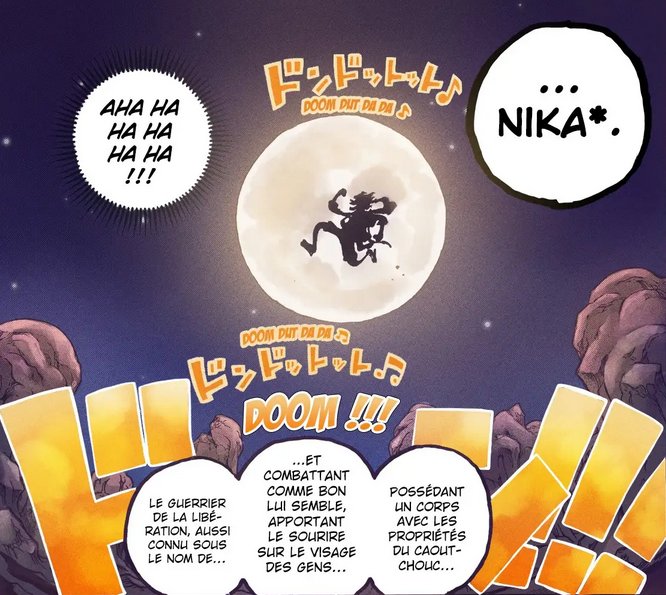 Vous connaissez d'ailleurs l'autre personnage qui pratique la musique et qui porte une coupe afro et comme par hasard oda le mettra dans la même position que Nika devant la lune !
