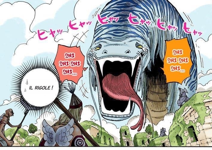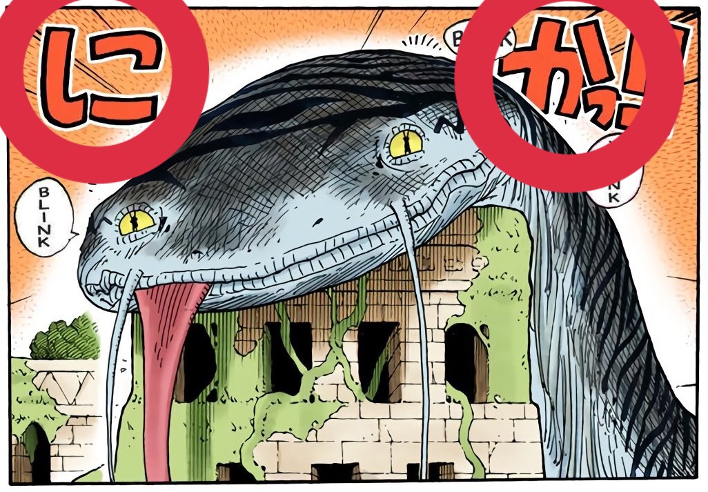Et oui je dis bien fils car Nola est le fils du Dieu soleil qui avait été tué par Norland. Et vous voulez savoir le plus fou ? Quand Luffy sera dans l'œil du serpent et que le serpent sourira les onomatopées "Nika" apparaîtront !